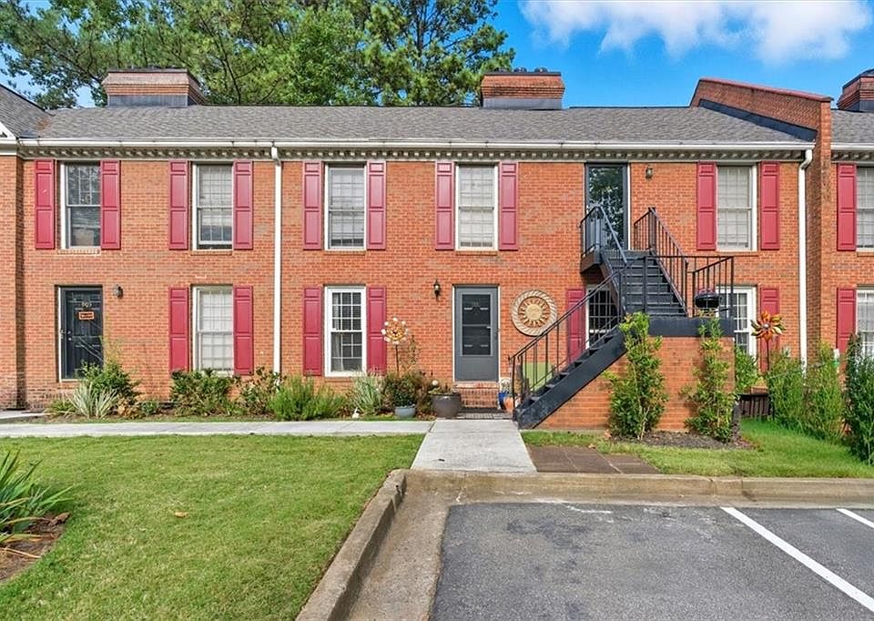 Come tour this adorable garden condo situated close to the Marietta Square. The front porch is inviting for relaxing outside. The unit features a roommate floor plan and each bedroom comes with large closets and separate private bathrooms. The living room features a beautiful fireplace and large window. There is an extra bonus room that can be used as a guest room, office, or sunroom with many windows for natural light. This unit also has a separate dining room space big enough to fit a table for 6-8 people. The door is on the main level with only a few steps, but the back of the unit is on the second floor. The neighborhood is gated. Features new interior paint, new roof and new HVAC unit.