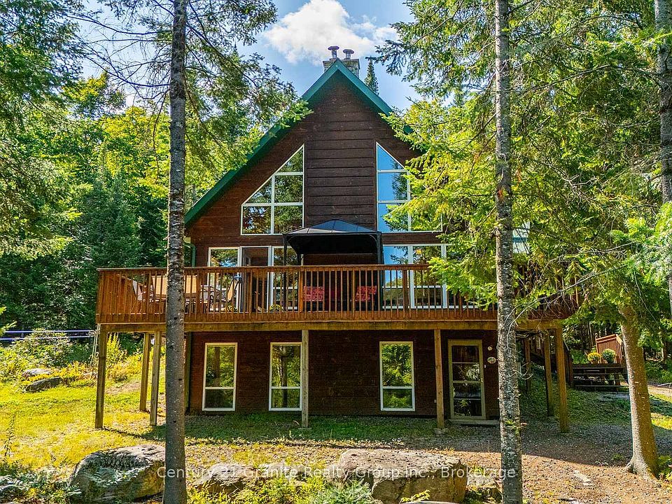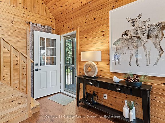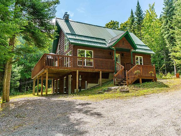 Discover your own private chalet hideaway in the heart of the Haliburton Highlands! Nestled on 30 acres of pristine countryside, this retreat offers the ultimate blend of peace, comfort, & convenience just 10 minutes from the shops, dining, & fun of Haliburton Village. Step inside & feel right at home in the bright, open-concept living space-perfect for cozy nights by the stunning stone fireplace or lively gatherings with family & friends. Slide out onto the spacious deck for morning coffee, summer BBQs, or simply soaking in the tranquil views.The kitchen is a chefs delight, with SS appliances, granite countertops, a handy island, & plenty of storage. The main floor also features a primary bedroom & four-piece bath for easy living. Upstairs, the open loft is ready for your imagination-think guest room, office, or creative studio. Downstairs, the walkout rec room with woodstove is made for movie nights & game days, plus theres an extra full bath, laundry, storage, & a bonus room with Murphy bed for extra guests. Loaded with upgrades- hw floors, a/c, propane f/a furnace, Generlink, & generator-this home is move-in ready. The detached drive-through garage is perfect for storing all your outdoor toys & gear.Explore your very own network of trails for hiking, snowshoeing, or simply wandering in nature. With two beaches & a boat launch on Drag Lake just minutes away, you will have endless opportunities for swimming, boating, & lake fun. Partially furnished for an easy move, this chalet is ready for your next adventure-whether its year-round living or weekend escapes. Don't miss your chance to experience the Haliburton lifestyle. Book your private showing today & make this one-of-a-kind property yours!