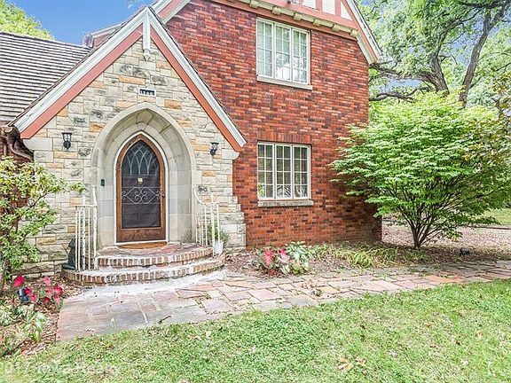 Breathtaking two-story brick Tudor in historic neighborhood. This one-of-kind home overlooks a wooded greenbelt area and sits on just under 1/2 acre lot. So many of the historical charm of this home has been preserved such as a vaulted, wood beamed, cathedral ceiling, a beautifully carved sandstone fireplace (rumored to have been imported from Italy by original owners), a unique church front door, original garage door opener, and a shoe shining station near the back door. Kitchen and baths have been updated detailing the tile flooring, new fixtures, and renewed cabinets. Beautifully restored solarium with Pella roller screen windows and exposed brick. Upstairs you will find a lovely master suite with attached studio or office. Partially finished lower level features a second fireplace and egress windows - easily could be converted into a 4th bedroom. You will fall in love with this historic gem the moment you see it. Schedule your private showing today.