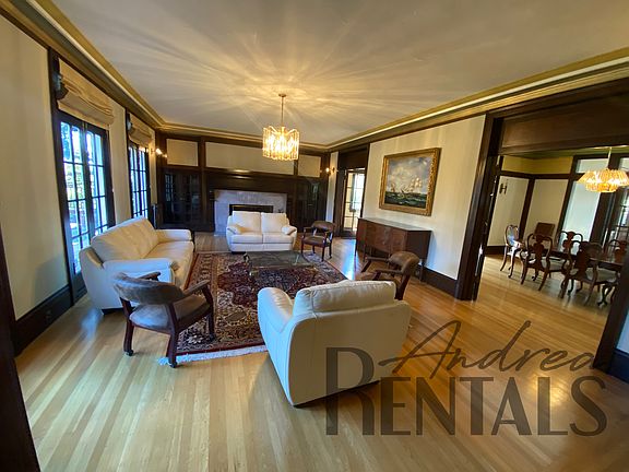 Spacious 5br/3.5bath gated Crocker Highlands estate with rear additional ADU cottage (6th bedroom), hot tub, and fantastic indoor-outdoor flow available now. Perfectly suited for those yearning for a tranquil retreat or a roomy space to entertain, this lovely 5,500 square foot home offers the best of both worlds . It was designed by noted architect John J. Donovan for his own family in 1919. (Donovan is credited with designing landmarks including the Beaux-Arts-Inspired Oakland Auditorium , now known as Henry J Kaiser Convention Center). From the front door, you are greeted by a gorgeous, wood-paneled living room with wide picture windows and a grand stone wood burning fireplace. T he first level is ideal for entertaining with a formal dining room, lounge, wood paneled library/office with private exterior access, sunroom and a contemporary dine-in kitchen. The second level has 5 bedrooms and 3 bathrooms that encircle a central family room/TV room that extends to an outdoor deck. Beyond the main house, overlooking the garden, is a detached cottage with a full bath and kitchen for a home office, overflow guest quarters, or retreat-like studio. Here are a some other features of this lovely property: - 2 sets of washer and dryers - Brand new hot tub nestled under the redwoods - Cedar lined spacious closets - Gated driveway - Beautifully landscaped front and back yards - Hardwood floors and tile throughout - Pet considered with additional deposit. Fantastic location, close to local parks and trails, and all the great shops and restaurants on Lakeshore/Grand Ave, Piedmont, Park Blvd. and Montclair Village. Convenient proximity to Crocker Elementary. Tenants are responsible for all utilities and spa maintenance. Owners include a gardening service twice a month. Pet considered with additional deposit. 12 month lease.