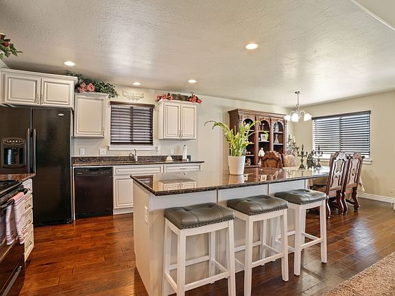 Gorgeous like new Rambler with 4,940 Watt Solar System that will be paid off. Unique custom shelf with columns. Large kitchen with two pantries. Granite countertops throughout house. Large Master Bedroom Suite with Tray Ceiling. 9ft ceilings in Basement - almost done being framed. Soft Water System and 50 gallon water heater. Huge fully fenced backyard, one XL gate and 2 side gates. Over $30,000 in landscaping. Huge RV Parking! Like New Large Shed with Huge Loft.