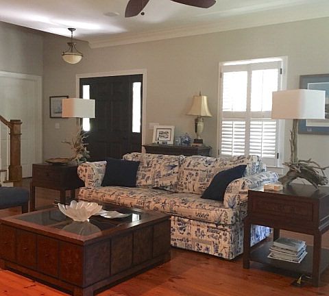 "Incredible Low Country Home" located at Coopers Point. Beautiful pine wood floors greet you with a great floor plan! Spacious living room with wood burning fireplace and plantation shutters, eat in kitchen with solid counters, gas stove and wet bar with wine cooler overlooking screen porch with cypress ceilings and tile flooring. Master bedroom is on the main level. Upstairs you have 2 bedrooms, full bath and a "hidden gem" of a bonus room. Double garage with attached boat storage. X flood zone