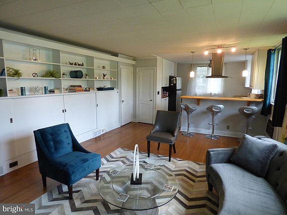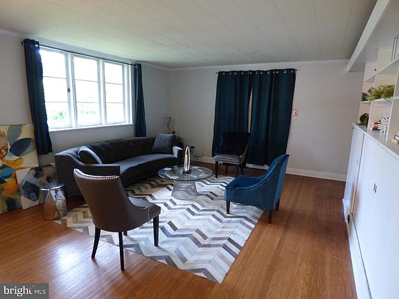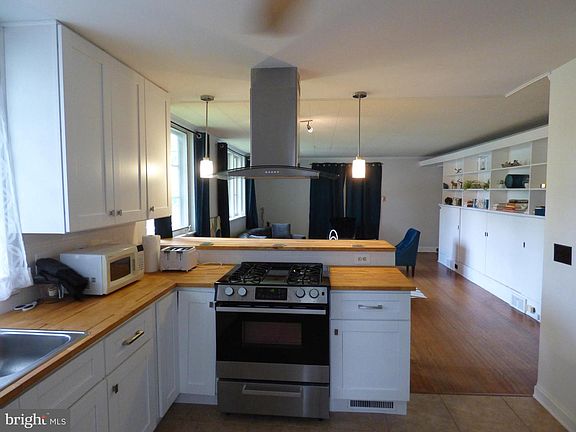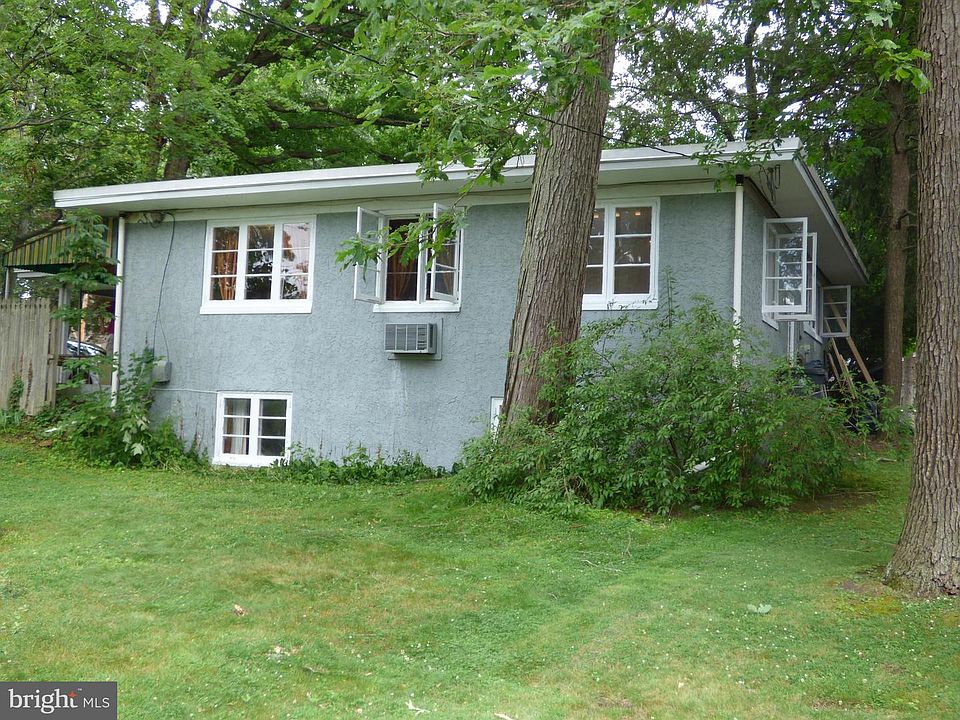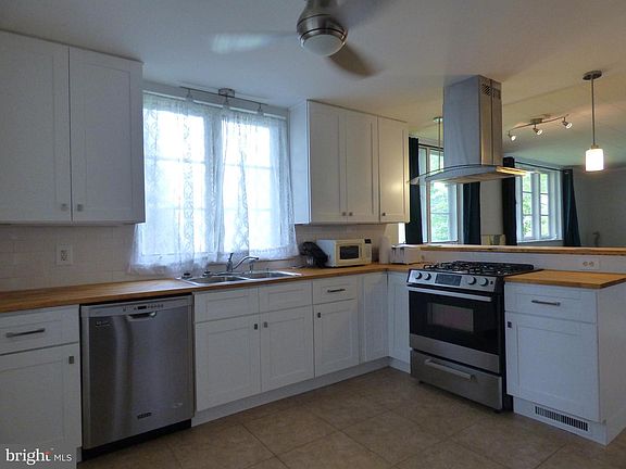 Contemporary ranch, foyer entrance with large coat closet, enters into huge living room, sufficient to hold dining table and 17' of storage, covered and exposed bookshelves, opens to exciting, renovated delightful kitchen with user friendly butcher block counter, raised breakfast bar with 3 bar stools, modern, ceiling mounted range hood, newer DW, porcelain floor, refrigerator. Ceramic hall bath. French doors to front patio shielded from the road by privacy screens. Huge family room in lower level with full sized daylight windows, knotty pine planked walls. Roof new 2011; Drive through driveway, enter from Edge Hill exit onto Tyson. Walk to train, schools, bus, shopping, Briar Bush nature center