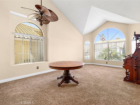 Sun Lakes Country Club is Senior Resort Living in a Golf Course Community for 55 years and up * 18-hole course and an 18-hole executive course for residents and guests only. All this with the backdrop of San Gorgonio Mountains and Idlewild. Such a beautiful view while sipping your early morning coffee. This home is known as the Marbella #400 Floor Plan with 2 bedrooms, 3 bathrooms, library, loft, inside laundry room and formal living, formal dining and a separate family room with a gas fireplace just off the kitchen. So much of this home has been upgraded such as the HVAC system, wood laminate flooring, newer carpeting, glass doors on the kitchen cabinets and recently painted both inside and out. The landscaping was done for ZERO maintenance - turfgrass for both front and back yards with raised flower beds with a few rose bushes. The back yard has an Alum a wood patio cover that covers the whole back end of the home including the master bedroom slider. Did I mention the view from the patio is amazing! The upstairs loft has its own full bathroom and large closet. The garage has an area that can be used for a golf cart or just extra room for a work bench and all those tools. Sun Lakes Country Club is located close to shopping, restaurants and entertainment. Morongo Casino and Desert Hills Premium Shopping Mall is 15 minutes east on highway 10. Some of the amenities in Sun Lakes are: 3 Club Houses, 3 Gyms, Restuarant, Lounge, Tennis, Swimming (inside & outside), Bocce Ball and Pickle Ball. If that's not enough - pick from the many clubs and activities like traveling and gardening.