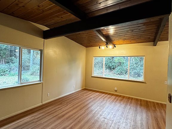 Newly renovated 1 bedroom 1 bathroom cabin in the woods. This home features a private trail to the Arcata community forest with a very large yard (no fencing). Walking distance to town and Cal Poly Humboldt via the community forest trails. Fresh paint, new flooring, an in unit washer and dryer, and a wood burning furnace for cozy nights by the fire (also includes a gas wall heater for convenience). Available now with water and sewage as well as yard care included in the rental price. Tenant is to be responsible for PGE, trash, and WiFi.