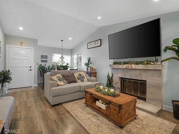 Discover this immaculate single-story home located in the heart of Corona, featuring three bedrooms, two full bathrooms, an office, and the added benefit of solar panels. Upon entry, you are greeted by upgraded plank flooring that extends throughout, providing a uniform flow and easy maintenance. This turnkey property offers ample space for entertaining guests, with main living areas adorned with vaulted ceilings, recessed lighting, and an abundance of natural light. The family room is highlighted by a cozy fireplace and mantle, creating a warm and inviting atmosphere. The kitchen, which opens to the family room, boasts stainless steel appliances and plenty of cabinet space for all your storage needs. All three bedrooms are generously sized, including the master suite with its own private bathroom. The office can easily be converted into a fourth bedroom or a game room, depending on your needs. Step outside to the well-manicured backyard with multiple fruit trees, where you'll find plenty of space to soak up the California sunshine. Don't miss this incredible opportunity – schedule your private showing today!