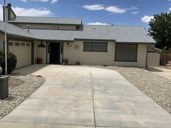 Beautiful single level home located in Prescott Country Club. The interior has upgraded lighting with dimmer switches for the kitchen and family room area; the hallway bath has a skylight. This home has a split floor plan and an extra room (Breezeway) off the kitchen that provides extra counterspace, storage cabinets and a side door that allows fresh air throughout the house. Extra-Large natural color porcelain tiles throughout, carpet in one bedroom. The front yard has a separate concrete RV parking pad and ample space to create additional parking. The backyard is fenced for privacy and has room for a shed, vegetable garden, playground, on open canvas for your own unique ideas. New Solar Screens!