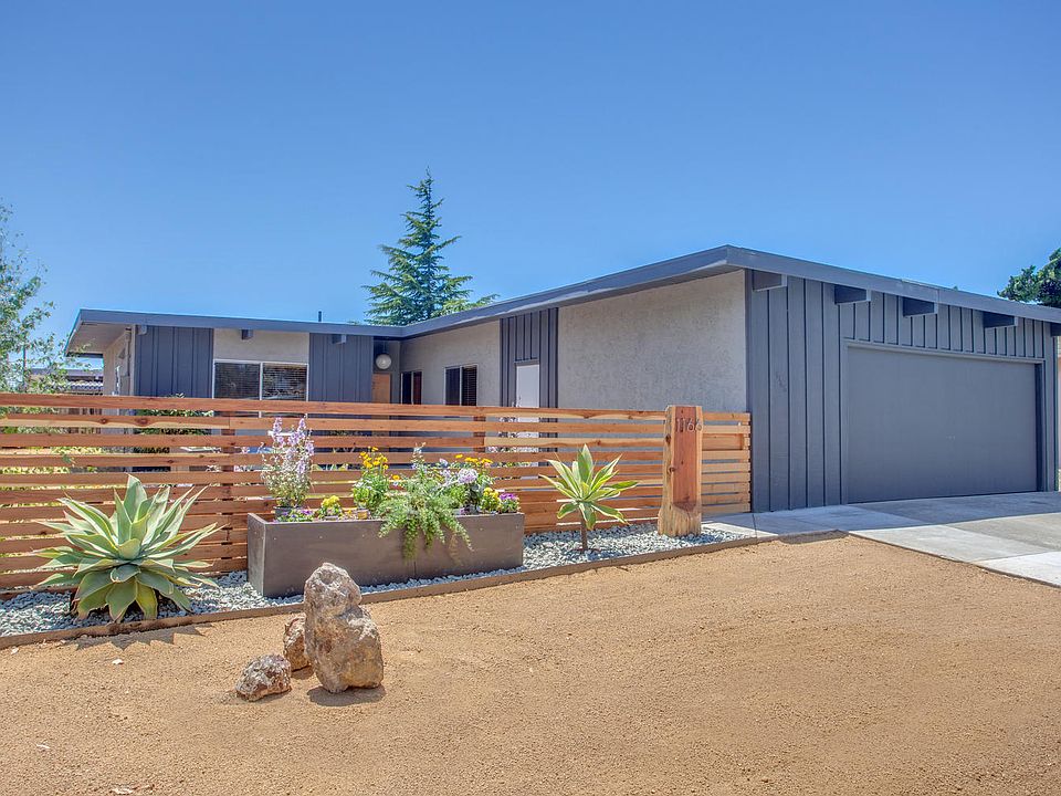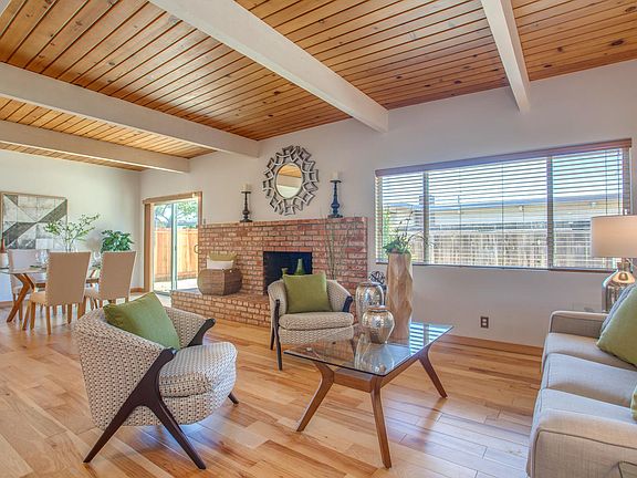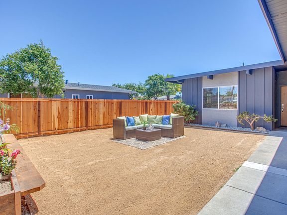 This delightful single story ?Eichler-esque? home offers a wonderful floor plan. The large updated kitchen is open and airy with abundant sun light. Beyond the kitchen is a delightful dining area and living room with a wood burning fireplace. The front, back and side yards all blend together nicely as a spacious house surround, with a nice patio in the back perfect for family gatherings.