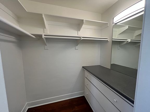 Murphy bedNew blindsSeparate kitchenBronze fixturesWalk in closetSmall dining areaBeautifully refinished hardwood floors