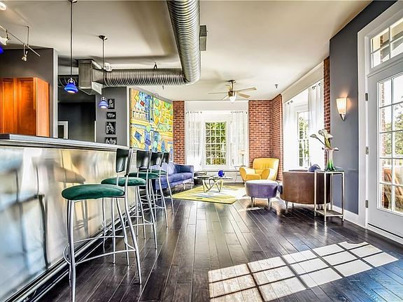 Chic and fabulous in-town living! Wonderful sunny loft feel with terrific windows and balcony make this a show-stopper! Attention to detail everywhere: Artfully exposed brick, custom paint/lighting, gorgeous hardwood floors. Kitchen features center island with stainless steel surround. Master bath w/new tile & frameless glass shower. Office/flex room is an easy 2nd bedroom. New herringbone tile on balcony. Huge 2-car garage w/amazing storage! New roof. New HVAC. Recent paint. Can't beat location--moments to Vortex in L5P, Ponce City Market, Beltline only 3 blocks away!