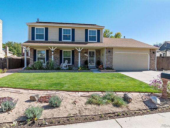 Gorgeous two-story home in popular Brookvale neighborhood. You'll be able to move right in this home that's been beautifully updated throughout! As you enter you'll be warmly greeted by gleaming hardwood floors that extend throughout the dining that opens up into into the spacious kitchen, complete with double oven, gas cooktop, granite, center island and more that will please even the most avid home chef and is perfect for entertaining family and friends! Retreat to large family room that features a gas fireplace and bay window that looks out to the beautifully manicured backyard. Upstairs has newer paint and carpet throughout and the primary bath has been updated featuring a stylish dual sink vanity and luxury vinyl flooring. Enjoy our wonderful Colorado weather grilling and relaxing on the large trex deck looking out onto the perfectly manicured yard complete with drip irrigated garden and 100's of perennials! Additional newer updates include windows, Daikin furnace, high-end Seeley Breezaire evaporative cooling, Sun Run Solar and more! This home is sure to please and a true must see!