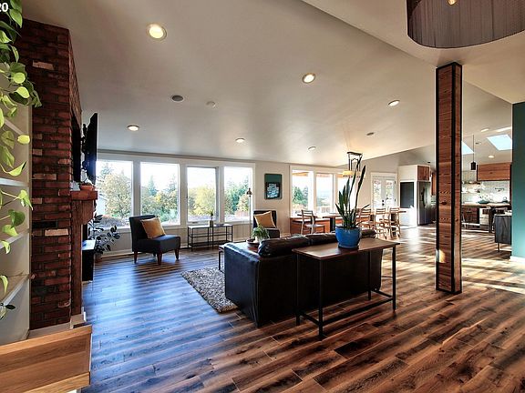 Stunning Custom Home on half acre w/View in prime Ridgefield location, no HOA. 3426 sqft, total remodel & addition by owner/builder w/permits 2015. Ideal multi-generational living, 5 bedrooms plus den, 4 full bathrooms. 2 bedrooms have private bathrooms, smaller on main level with larger deluxe upstairs. Exceptional combination of natural elements coupled with a slight industrial vibe to create a warmth & character. Southwest Exposure & tall windows flood the home w/natural light.