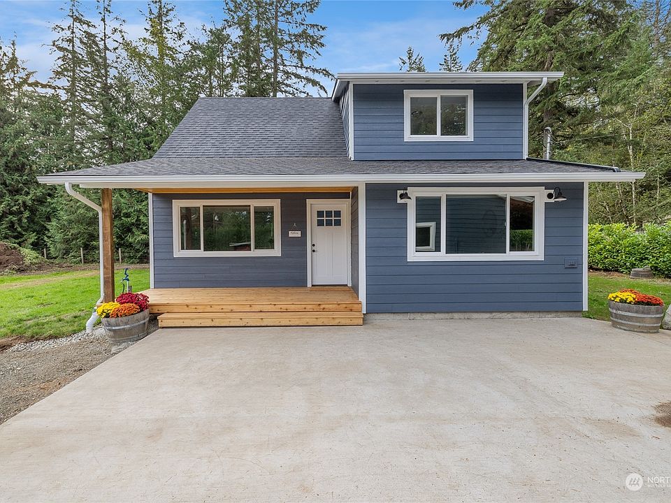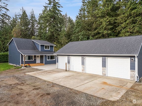 Completely redone, interior & exterior, nothing left untouched! New Kitchen w/ beautiful cabinetry, quartz counters, backsplash & island & SS appliances. Primary Bedroom on the main floor along w/ the 3/4 Bathroom & Laundry! New lvp flooring throughout main floor as well as new trim & fresh paint. Upstairs boasts 3 Bedrooms & a Full Bathroom. New mini-split for heat & a/c & tankless water heater too! New hardi plank siding, roof, windows & front & back decks. 4 car garage w/ one of the bays converted to an office, tandem covered carport & RV parking including hookups. Just shy of 2 acres, this level parcel offers unlimited possibilities! Close to Hwy 16 & Gig Harbor, but you feel like your truly living in the country in this tranquil gem!