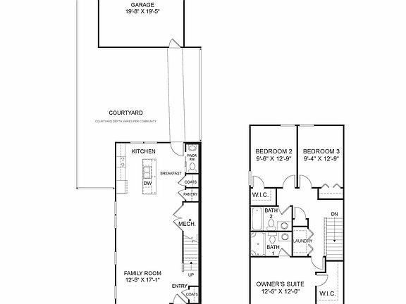 Welcome to the Thayer Townhome!. You'll notice that this series' exteriors are crafted with care, a far cry from cookie cutter townhomes. At 1511 sq. feet, you'll be surprised by how much space these townhomes offer!Our Thayer Townhome offers two levels of modern design efficiency with a private courtyard space between the home and the garage. Visitors are greeted on the main level by a covered porch, entryway, and coat closet. The open concept main floor includes a living room, dining area, and kitchen which includes a powder room, pantry, and mechanical room. The upper level includes an owner-suite featuring an attached private bathroom and large walk-in closet. Additionally, this level features two full-size bedrooms and a bathroom. For your convenience, the laundry room has been thoughtfully placed on the upper level also. Outside, the private courtyard offers you the opportunity to create an outdoor entertainment area, garden retreat, or a space that reflects your lifestyle.This home proudly features our Farmhouse Collection! When you buy a home that is designed with one of our new Collections, you gain a pre-selected yet curated palette of selections that will make your home look remarkable. The Farmhouse Collection is our take on the rustic-modern classic, with hickory luxury vinyl plank flooring, traditional white cabinets, and matte black accents. Fall in love with the white quartz countertops, and the textured pewter tile that adds a vintage flair to your kitc