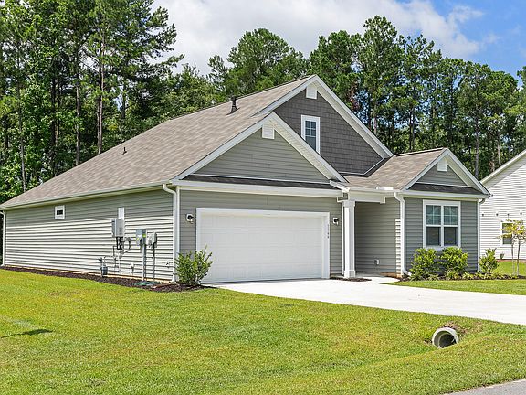 Welcome to 1166 Wading Point Blvd, a 3 bedroom/2 bath home nestled in the heart of French Quarter Creek, only 15 minutes from Mount Pleasant. This move-in-ready home, built in 2023, has a 10-year builder warranty, smart home technology and recent upgrades including new paint, hardware, lighting, blinds, tile backsplash, and a barn door. In addition to easy one-level living and lots of storage, this home features a large primary suite with dual closets, double vanity, and private water closet. The open-concept living and kitchen areas are perfect for entertaining. Stainless appliances, granite countertops, and a large walk-in pantry make this a dream kitchen! Situated on .41 acres, the sizable backyard (accessible from beautiful large sliding glass doors) offers views of the natural andprotected buffer behind the neighborhood. Don't miss the best priced home in French Quarter Creek - under $500k! No flood insurance required!