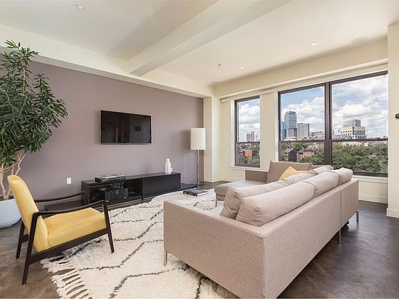 A remarkable South End home with unbeatable views, expansive space and garage parking! This sunny 5th floor property presents a unique opportunity to live in a sprawling contemporary home in one of the best elevator buildings, while enjoying all of the benefits of life in Boston's charming South End. With over 1600 SF, the thoughtfully designed floor plan offers a vast living area with 25' of windows overlooking the city skyline, a stunning master suite with separate dressing room, full 2nd bedroom, an open entry foyer and unbelievable storage throughout. Along with a perfect kitchen with breakfast bar, other features include polished concrete floors, all-day sunlight with 3 exposures, custom lighting and audio, renovated bathrooms and a private roof space. Pet friendly, professionally managed building with common courtyard and one direct access garage spot included.