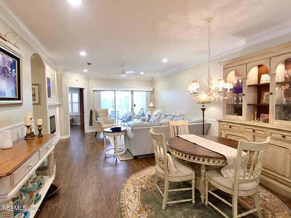 Patio home in the gated Amberwood community inside of Fleming Island Plantation. Floorplan has good flow with entrance foyer, split bedrooms, breakfast nook, formal dining, and inside laundry room. Nicely appointed kitchen finishes including polished marble counters, stainless appliances, 42'' cabinets, and tiled backsplash. Home highlights to include built in electric fireplace and shelving, plantation shutters, Double crown molding, wainscoting, hard flooring in common areas, and crown molding. Third bedroom currently used as an office with built in desk and Murphy bed. The covered front porch or screened patio are great spots for morning coffee or late afternoon refreshments. All Furniture available (excluding a few pieces, art and accessories). Roof replaced in 2022.