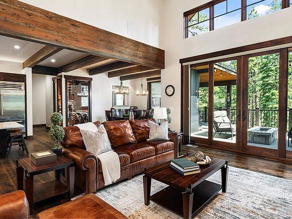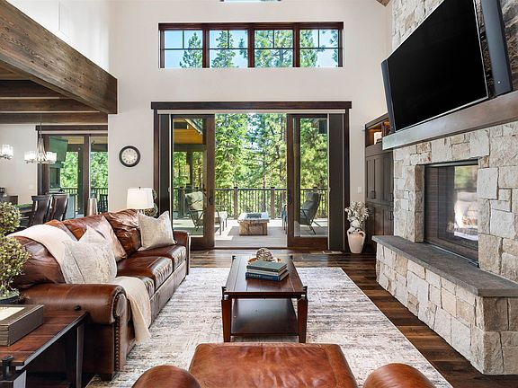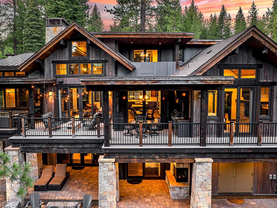 Welcome to The Bear Lodge Estate, an exquisite residence nestled in the prestigious Gray's Crossing community in Truckee, CA. This home is a testament to timeless Tahoe design, epitomizing the charm and elegance of mountain living. Combining luxurious craftsmanship with state-of-the-art technology, this estate offers an unparalleled living experience. The integration of Savant smart home automation, custom audio and lighting, and meticulously chosen upgrades ensures the utmost comfort and convenience, creating an ideal sanctuary for both relaxation and entertaining. At the heart of the home, the open floor plan creates a seamless flow between the large living area and the state-of-the-art kitchen. The living area features a stunning see-through fireplace shared with the executive office, flanked by custom masonry that adds a touch of rustic elegance. The grand central island, complete with its own sink and live-edged granite countertops, serves as the centerpiece of this culinary space. A stunning 400-bottle glass wine cellar adds a touch of sophistication, while the large dining area, featuring a built-in china buffet, provides easy access to the outdoor wrap-around deck and entertaining area. The home features three en suite bedrooms, offering privacy and separate living areas, along with a cozy family den and an additional kids' bedroom downstairs. The spacious game room, complete with a wet bar, provides access to a family-style fire pit. Expansive wrap-around decks include a fully-equipped outdoor kitchen with a built-in BBQ, an outdoor TV, and a comfortable lounge area with an additional fire pit. A standout feature of the home is the executive office, a rare gem that exudes sophistication and functionality. This space boasts a library-style floor-to-ceiling bookcase with a see-through fireplace and an elegant ladder system. The office is complete with a large executive desk, a mini wet bar with a sink and fridge, and breathtaking forested views. For a refreshing change of scenery, step out onto the deck directly from your office and enjoy working in the crisp mountain air. The garage is meticulously designed with features including air conditioning, a ski dryer, epoxy floors with drains for easy cleaning, overhead storage, and Wi-Fi-controlled doors. It also includes a workbench, a 220-Outlet ready for your electric vehicle, an outdoor sink, and a space designed to accommodate a boat with 10ft doors. Additionally, the home provides ample storage space with a full mechanical room and crawl space, perfect for all your storage needs, or a potential expansion. This sublime mountain sanctuary transcends the ordinary, blending exquisite luxury with the warmth of home, and promises an unmatched living experience. The list of custom upgrades and features is extensive- please inquire for the complete list. *Private tours available daily please call or text 775.203.1215 *