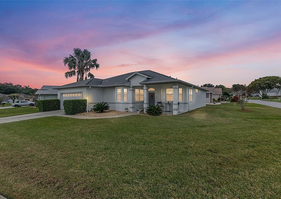 YOUR LUCKY DAY, this beauty is BACK ON THE MARKET! Welcome to this stunning residence in the Exclusive Gated Golf Community of STONECREST, with all the amenities, adjacent to THE VILLAGES, FLORIDA! One owner home, well maintained! CONCRETE/BLOCK/STUCCO Destin Floor Plan offers a perfect blend of comfort and elegance. Built in 1997, with recent upgrades to include; INTERIOR and EXTERIOR painting 2023, NEW 4-ton HVAC system 2022, ROOF 2018, WATER HEATER 2022. The thoughtfully designed layout maximizes every square inch, ensuring no space goes to waste. 18 x 17 Living room featuring soaring ceilings with sliders that open to a 22 x 12 ENCLOSED LANAI. The Lanai is accessible from both the Master bedroom and Guest bathroom. The second Bedroom is a spacious retreat with an impressive 8 x 8 walk-in closet, providing ample storage. The Master en-suite is a private sanctuary, complete with Dual Vanities, Separate SHOWER, Soaking tub, and PRIVATE Water Closet. Inside laundry room conveniently located off the garage. The garage features shelving, utility sink and door, whole house WATER FILTRATION Sysem. The kitchen is a chef's delight, featuring an Island, Pantry Closet, Breakfast nook, Stainless Steel Appliances, and TILE Flooring. HARDWOOD Floors grace the Living room, Dining room, and Foyer, while Laminate flooring adds warmth to the bedrooms. The property is being offered with the option to include the furniture, making it a turnkey opportunity for those looking to move in hassle-free. Don't miss your chance to own this remarkable home, where luxury meets practicality. Schedule a showing today and start living the retirement dream!