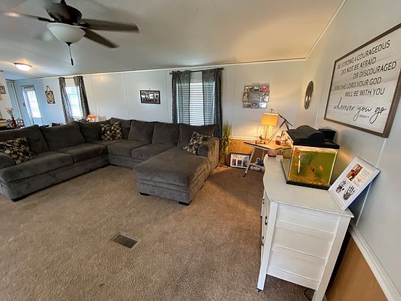 Spacious singlewide is 16 x 80, kitchen/dining is open to living room with vaulted ceiling making it feel larger than it is!. Large owners bedroom has a nursery/office/sitting room adjoining it and bath. Laundry is between kitchen and owners bedroom with an exit door to back yard. Two more bedrooms and bath are at the other end of the home. Yard is mostly fenced. Post office doesn't deliver to Gay St., so you need to get your mail at Adelphi Post Office. Mobile home taxes are $305.69