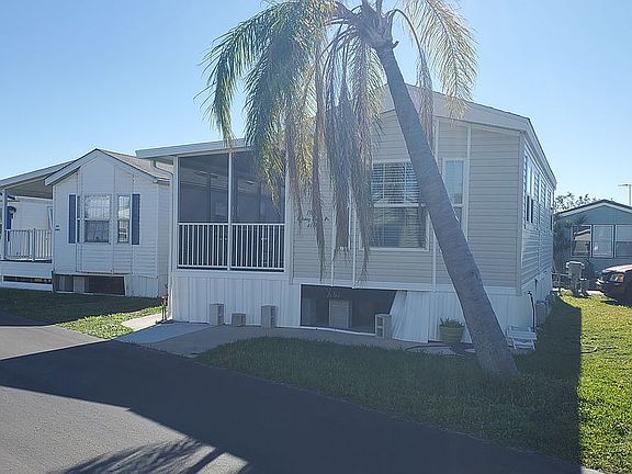 Located in a very desirable area in Fort Meyers and within 6 miles of three beaches (3 miles to Fort Myers Beach). This is a land owned community with very low monthly maintenance fees! Although the home was manufactured in 2020, it was installed in 2021 and has only been lived in a little over one year. The huge 8' 6" x 28' lanai was added in September 2022. The community has two heated pools, one of which is indoor, pickle ball, horseshoes, shuffleboard, tennis, two clubhouses and is a very active not age restricted park. Close to shopping and bus route. Turn-key!!!