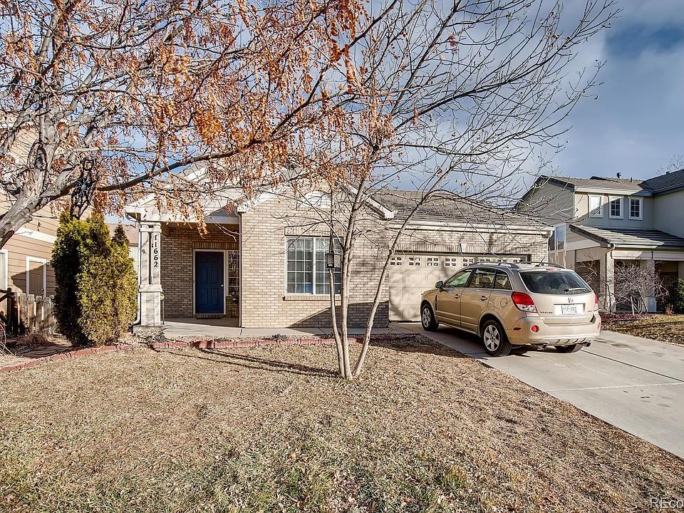 Beautifully updated brick ranch home in the Buffalo Run neighborhood of Commerce city. This home is close to Landmark Academy and Prairie View schools, close to DIA, and has a walk friendly neighborhood feel. This home boast a wonderfully open floor plan with an office or bedroom in the front of the home with plenty of sunlight. As you walk through you will see the cozy gas fire place, as you enter the kitchen you will see the bright energetic feel of the home with plenty of natural light and open space for a large dining table. The kitchen has updated paint and granite counter tops. The rest of the home boast 3 bedrooms and 2 full bathrooms with updated granite counter tops and modern sinks. The Master bedroom has it's own private full bathroom and walk in closet. The Garage is a large 2 car with plenty of space for storage as well as further storage in the large attic. The AC and Water heater are both new, large yard with plenty of room for activities for children or pets.