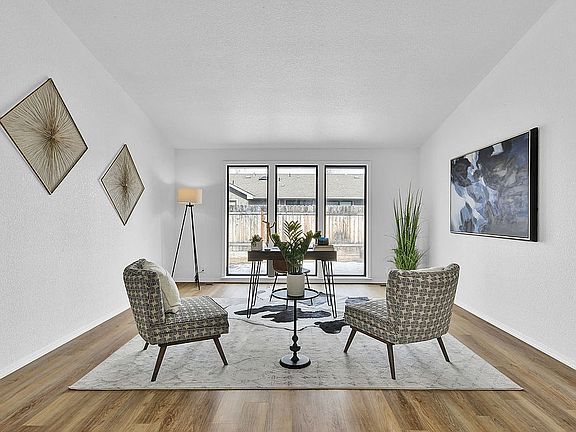 Modern oasis with style and charm! As you enter, floor to ceiling windows welcome you and flood the spacious living room with an abundance of natural light. A sleek, captivating brick fireplace grounds the airiness of the interior and defines the living space from the kitchen and dining rooms. Contemporary details grace the home as you head to relax in one of the cozy spacious bedrooms. Unwind in your luxurious master retreat with a gorgeous shiplap wall and vaulted ceilings. The backyard oasis is perfect for entertaining with a covered patio, mature trees. and completely fenced yard. This gem is waiting for you to call it home!