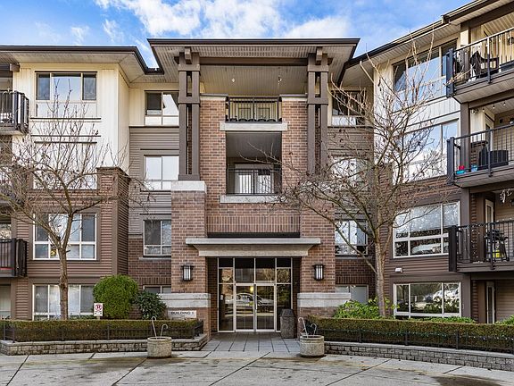 Enjoy all seasons with your unobstructed GREENBELT view from privacy of your deck! Incredible value here: updated two bedroom + den home with two full bathrooms. Brand new laminate flooring. Updated lighting that will brighten up your home AND your mood during long winters. Ideal wide layout with bedrooms on either side of unit for maximum privacy. Kitchen features stainless steel appliances + bar against large granite counter-space. His & Hers closets in primary bedroom. Separate shower & tub + double sinks in ensuite. Storage. Awesome complex & strata. Building features amenities room for your parties, full gym, & guest suite for the comfort of you & your guests. Ample visitor parking. Private dog park. Easy access to Westcoast Express thru dedicated path. Book your showing today!