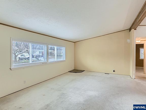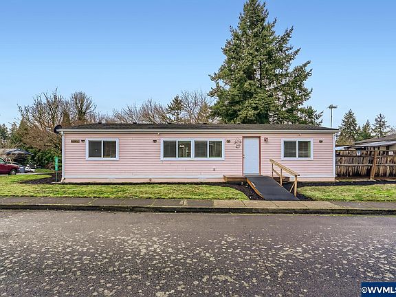 AFFORDABLE manufactured home on its own land located only 25 min from Portland or Salem! Freshly landscaped with new fenced yard, deck, and RV parking w/ Elect hookups. New roof, siding, paint & deck in 2012. SS fridge and newer LG Range included! Spacious primary suite: walk-in closet, updated bathroom, & walk-in shower. Handicap amenities. Living spaces need TLC. Seller to credit $2300 towards new carpet! Only $1376/year for combined HOA & taxes! Community wtr/swr. Sidewalks to community park.