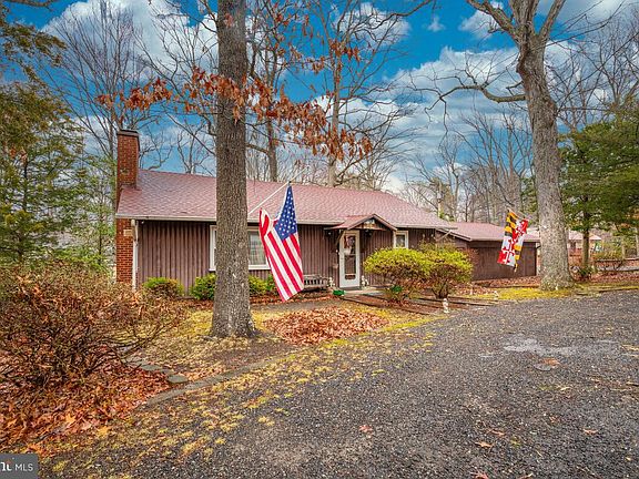 Welcome to 11665 Mesa Trail — a charming log home situated on a desirable corner lot in Chesapeake Ranch Estates. This classic retreat features vaulted beam ceilings and a cozy fireplace, creating the perfect cabin-style ambiance. A spacious detached garage and lower-level storage beneath the rear enclosed porch provide plenty of room for vehicles, tools, and outdoor gear. Whether you're looking for a peaceful starter home or a relaxing getaway, this property offers timeless appeal with access to both the Chesapeake Bay and community lakes. Roof was replaced in 2022.