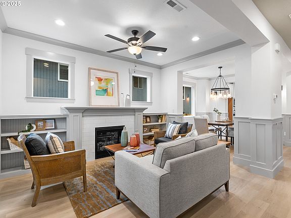 Welcome to your dream home in West Portland Park, where vintage charm seamlessly blends with modern luxury! This beautifully designed 5-bedroom, 4-bathroom home spans three spacious levels, offering the perfect balance of style, comfort, and functionality. As you step inside, you’re greeted by a cozy living room featuring built-in shelving and a charming gas fireplace. The adjacent sitting room is ideal for gatherings and flows effortlessly into the gourmet kitchen, complete with a large eat-in island, gleaming stainless steel appliances, custom cabinetry, and a stunning tile backsplash. The family room, with its own gas fireplace and built-in features, provides additional space for relaxation and entertaining. On the main level, you’ll also find a full bathroom and a flexible room that can serve as a fifth bedroom or a home office, offering added convenience and versatility. The lower level is an entertainer’s dream, featuring a spacious living area perfect for movie nights, along with an additional bedroom and bathroom.Upstairs, the luxurious primary suite awaits, complete with a walk-in closet and a spa-inspired ensuite featuring a dual vanity, soaking tub, and walk-in shower. Two more generously sized bedrooms, a full bathroom, and a well-appointed laundry room complete the upper level. Step outside to your private yard, ideal for outdoor relaxation, and enjoy the convenience of a detached garage. With the peace of mind that comes with new construction, this home is backed by a reputable local builder’s warranty and an extended 2-10 warranty. Located in the highly sought-after West Portland Park neighborhood, you’ll enjoy close proximity to PCC Sylvania, nearby parks, and all the amenities that make this community so desirable. Don’t miss your chance to own this exceptional home—where convenience meets lifestyle! [Home Energy Score = 9. HES Report at https://rpt.greenbuildingregistry.com/hes/OR10235839]