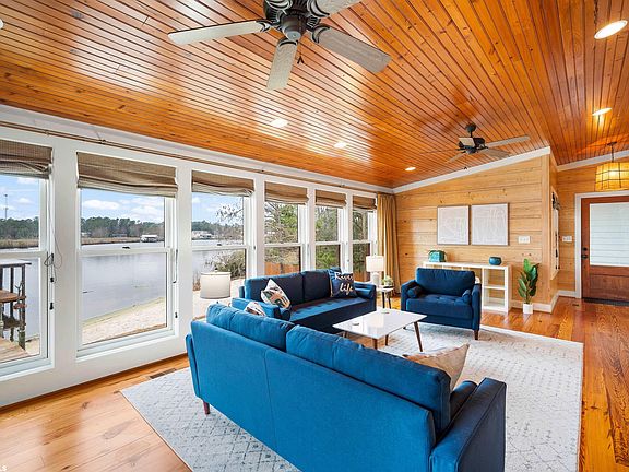 This is one AMAZING home located on the deep and widest part of Fish River! Catch blue crab or take in the gorgeous sunsets, all from your private dock. The main home is 3Bed/3Bath/2Half Baths, and every square inch is perfect. From the beadboard ceilings to the pine floors AND the incredible views of the river from every room, this home is spacious, yet cozy, and perfect for entertaining. You will love the custom touches in the kitchen including a 5-burner gas cooktop, stained cabinets, granite countertops, stainless appliances, and extra seating at the breakfast bar. Retreat in style in the incredible primary bedroom, complete with a sitting area/office space and a fabulous en-suite that includes a separate walk-in shower, beautiful claw foot tub and dual vanities. This bath also has a heated floor and HUGE double custom closets! Upstairs you can find all the bedrooms and baths you need, including a small room that could be a playroom or additional study. Outside, on the ground floor, you will find TONS of living space, an outdoor kitchen, outside shower, extra storage, and an outdoor wood burning fireplace. The downstairs outdoor area also has a half bath so any guests at the river do not have to enter the home with wet clothes to use the bathroom. The home also has an elevator and whole home generator for added convenience. The boat dock has a lift (also a pontoon boat lift) and a step-down fishing/tanning platform and covered area for shade. It’s also home to an incredible 450 sq.ft. custom boathouse with crazy high end maple countertops, shiplap walls, wood ceiling, full bath and loft for sleeping, and don’t forget...a million-dollar view!! Per seller, new grinder pump in Dec 2021. New A/C unit upstairs in March 2023. There is so much this home has to offer, so schedule a showing today to see it for yourself!