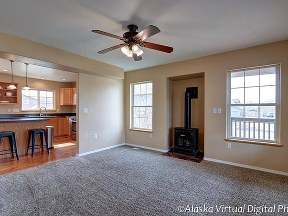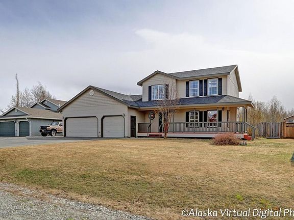 Enjoy the gorgeous mountain views of Pioneer Peak while bbq-ing on the huge back deck. The large fenced in back yard also has a separate area for gardening. Not only does this home have a three car garage, it also has RV parking on the side. With all 3 bedrooms up and two separate living rooms down, this home fits all your needs. New cabs, countertops, light fixtures and mirrors just installed!
