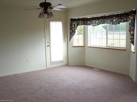Beautiful home in peaceful Pioneer Meadows, just minutes from Palmer, schools, shopping, the hospital. Easy commute to Anchorage & bases. Large fenced back yard, real oak hardwood floors in kit & dining area, fresh paint interior, roomy 14'x18' deck in back, front covered porch, nicely landscaped. New carpet 9/13/08 PLEASE REMOVE SHOES. Leave card. Thank you.