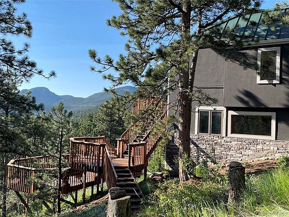 Welcome to your Mountain Home! Truly an “Overlook” of the entire canyon below – spectacular views! This home has been loved, cared for and enjoyed over the years, and is now ready for its new owner. Many special features abound in this comfortable multi-level hillside haven with creative open floorplan: Spacious wood-paneled loft suitable for office (including highspeed duplex fiber internet) or spare bedroom (including a “treehouse” for the kids); sunken vaulted-ceiling living room with cozy wood-burning stove that opens onto an expansive cascading deck for connecting with nature (perfect for birdwatchers or stargazers), exquisite entertaining, or a sunrise breakfast; and reclaimed barnwood flooring in basement leading to a jetted redwood hot tub. Downstairs entertainment room with programmable gas stove. Completely redone stucco & stone exterior, new gutters, new windows, and a metal roof. Oversized 2-car garage with work bench. Large attic for storage. Year-round maintained road with little traffic. Option to add adjacent 1.5-acre lot - have your agent contact Listing agent for more info!