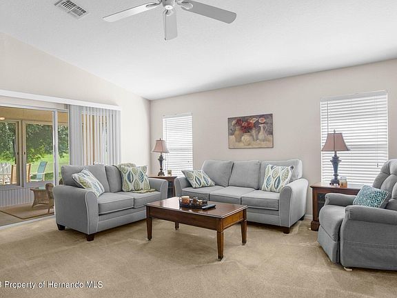 *Active under contract - accepting back up offers* Welcome to your perfect Florida paradise! This 2 bedroom, 2 bath, 2 car garage home is located in the beautiful 55+ community of Wellington. You will appreciate the well-maintained (New A/C in 2023) and the light & bright interior boasting tons of windows and sliding doors that let in all the natural sunlight. Enjoy a 1260 square foot open floorplan with an incredible Florida room - ideal for entertaining or relaxing while enjoying the gorgeous Florida weather! Step outside onto your open patio to relax outdoors and watch the beautiful sunrises or sunsets with an added bonus of no rear neighbors - just tranquil views of nature. The amenities in this gated community are unbeatable - enjoy a refreshing swim or soak up some rays at the pool & spa, exercise at the fitness center, play a game of tennis, pickleball or shuffleboard on one of their courts, spend time with friends at their club house with a restaurant or simply stroll along its sidewalks. Plus, it is conveniently located less than 3 miles away from area restaurants & grocery stores as well as Spring Hill hospital - making every day errands a breeze! Adventuring out? Only 9 miles from Weeki Wachee Springs State Park just waiting for you to explore its picturesque beauty! And don't forget about all the Gulf Coast life has to offer with easy access (within 15 miles) to beaches & boat ramps. Traveling? You will be less than 6 miles from the Suncoast Parkway for easy commuting to Tampa or the airport. Don't miss out on this great opportunity - contact us today to schedule your private showing!