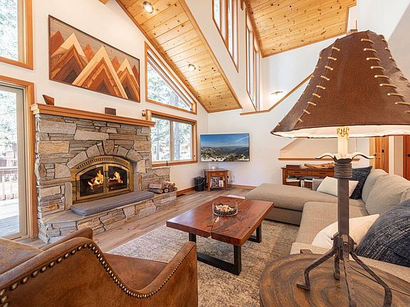 Welcome to this delightful, split-level ski lease in the sought after Tahoe Donner neighborhood! Situated within the desirable Mougle Lane "loop," this retreat boasts abundant natural light and an easy-living floor plan, complete with front and rear decks, a spacious kitchen, and a large great room perfect for entertaining. Upon entering the newly renovated luxury rental, you'll ascend to the main level, where open-concept living meets modern luxury. The centerpiece of this space is the expansive kitchen island with a granite countertop and all-new stainless steel appliances, including a 5-burner stove, refrigerator, dishwasher, and microwave. Whether you're whipping up a gourmet meal or enjoying a casual breakfast, this kitchen has all your culinary needs covered, including a toaster oven, KitchenAid mixer, and wine fridge. The living area features a 65" flat-screen TV, a plush sectional in front of the wood-burning fireplace, and high vaulted ceilings with large windows that flood the space with natural light. The adjacent dining table offers plenty of room for family meals or game nights. Ascending the beautiful wood staircase, you'll discover the primary bedroom suite, complete with a king bed, large closet, and plush leather chairs. The ensuite bathroom is a true retreat, featuring a stand-alone tub, high-end shower, and a large double vanity, providing the perfect place to unwind after a day of adventure. On the main level, you'll find two bedrooms, each with queen beds, large closets, and high-end comfortable bedding. One bedroom offers views of the pine forest, while the other features a desk with a monitor for those who need to stay connected. These rooms share a luxurious hallway bathroom with a modern shower. The lower level offers a versatile bedroom with a twin-over-full bunk bed and a sleeper sofa, making it ideal for kids. This space includes a sink and bar area with a mini fridge, a shuffleboard table, and a 66" flat-screen TV. A full corner bath, laundry room, and private hallway with a work desk and monitor make this area great for remote work. The room opens to the back patio, where the hot tub sits, protected from the elements by the upper deck. 2498 sq ft Private Hot Tub Wood Fireplace Shuffleboard table 65" Flat-screen TV Access to Tahoe Donner amenities (See Details Below) 20 minutes to Palisades Tahoe (formally known as Squaw Valley/Alpine Meadows) Sugarbowl, and Northstar Ski Areas 10 minutes to historic downtown Truckee for shopping, dining, and more ONLINE BOOKING UNAVAILABLE - Monthly Lease Available (WINTER ONLY) Additional Lease Terms Apply. Please contact us for details!