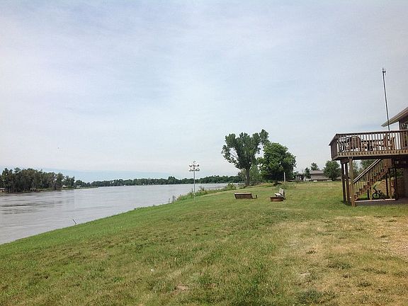 Completely remodeled 4 BR, 2 BTH home on the Missouri River! Extremely rare find - on the river but NOT FLOOD PLAIN! No water issues whatsoever in 2011 or 2019. FEMA elevation certificate available. Over 2000 finished sq. ft, everything new! Windows, siding, roof, HVAC, well, septic, poured basement, patio, deck, floor coverings, interior and exterior paint, appliances, kitchen cabinets, both bathrooms, all only a few years old! Easily one of the most exceptional lots on the river - extended views both up and down the river! Full ownership rights, could be primary residence or wonderful vacation home! A very nice floating dock is included. The brand new garage is 24x24 x 12 with a 16x10 door. Has its own 100 amp power with lights and outlets already ran. Cat 6 internet ran from house to garge providing it's own wifi. Pallet racking and boat left in the garage for new owner. In ground trampoline, above ground sand box, fire pit with string lights.