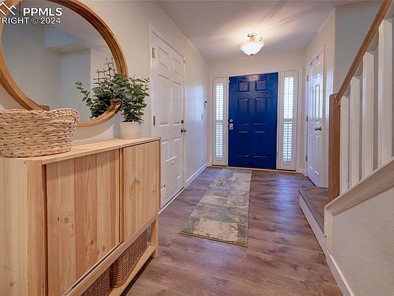 Welcome home to the quaint town of Monument! Great downtown shopping and restaurants, close to 1-25 with access to the Springs and Denver. This newly remodeled 4 bedroom, 4 bath home with loads of upgrades is waiting for you to call home!! Included in upgrades are new flooring throughout, new solid surface counters in kitchen and baths, ceiling fans, window coverings, custom dry stacked stone fireplace. Eat- in kitchen, newly finished cabinets, new dishwasher and breakfast bar, and newer washer and dryer are included!! This beauty has one bedroom, bath and laundry area on the first floor, 2nd floor has eat-in kitchen, bath and open concept living with 9ft ceiling, a wall of windows with Plantation shutters. Master bath has new ceramic tile in shower and another bath upstairs has new subway Subway Tile in shower. Living room walks out to the deck where you can enjoy those warm summer nights and a beautiful view of Pikes Peak! Simply Safe security system is in place as well. Award winning D38 schools are close by, as well as Fox Run Park with hundreds of acres of trails. a dog park and picnic facilities. There is also access to The Barn which is a venue for Woodmoor residents. This one is waiting for you to call it home!!!! Great location and close to everything you would need!!