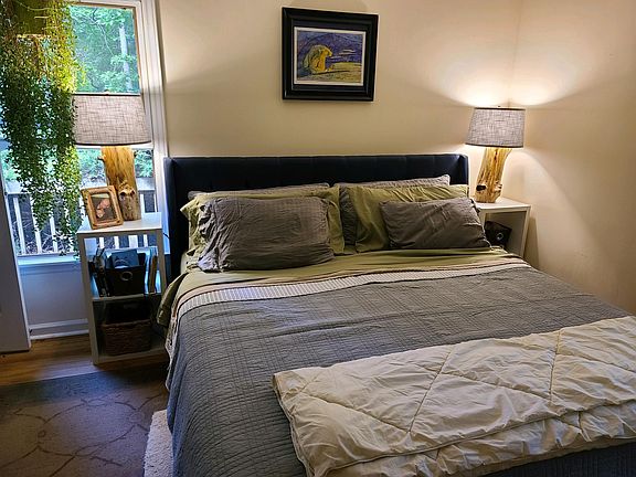 Well kept rock home in a beautiful, private, serene area of Fairview! The master bedroom has a connecting bath, hardwood floors throughout, front porch and side deck with views of the woods. This home has well and septic, so no charge for those! Renter is responsible for all other utilities and mowing the grass.