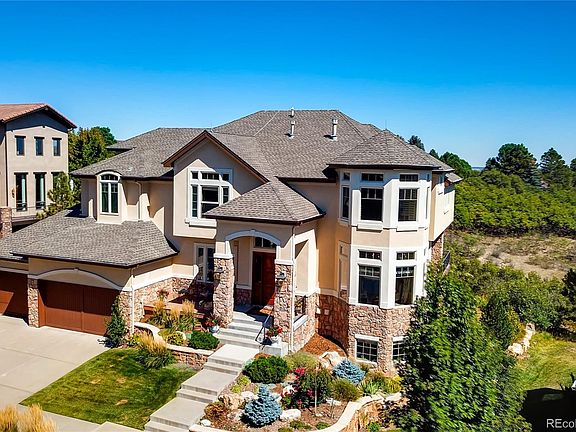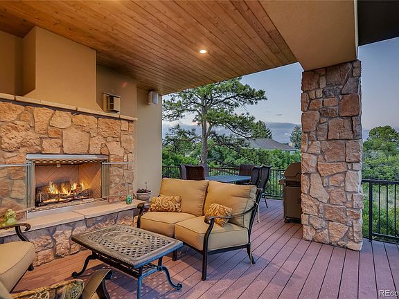 Fabulous custom home on premium lot backing to open space in the prestigious gated community of Buffalo Ridge Estates. This home was built to allow the homeowner to enjoy the incredible outdoor spaces surrounding the home. 4 separate outdoor spaces were created to allow you to enjoy the beauty of Colorado. Relax on the secluded flagstone patio tucked in the scrub oak while listening to the soothing backyard water feature that entices birds and wildlife into your yard. The rear deck has views across the valley where you can see all of Castle Pines. The covered section of the rear deck has a gas fireplace and provides an outdoor room that can be enjoyed year round. The intricately crafted knotty alder staircase and floating bridge are the centerpiece of the home's interior. The gourmet kitchen has a gas cook top and double ovens along with an island and walk-in pantry. The open floor plan allows you to be in the kitchen and still interact with friends and family in the nook and family room. The formal living room with a rotunda and formal dining room provide great entertaining spaces. A spacious office opens to the covered deck and has dramatic knotty alder beams and built-ins. New roof in 2020! The second floor contains the master suite which has a 3-sided fireplace that opens to a separate master retreat. Enjoy reading or relaxing in the master retreat while gazing at the views of Pikes Peak! The master bath boasts a large frameless glass shower and soaking tub along with beautiful tile and woodwork. All 3 additional second floor bedrooms are spacious and have 10' or higher ceilings! Each also has its own walk-in closet. The finished walkout basement has 10' ceilings and is filled with natural light thanks to the southern window exposure. The theatre room has tiered seating and truly feels like a movie theatre! The spacious rec area has room for a pool table plus a separate area for workout equipment. Video and 3D tours are available for this home!