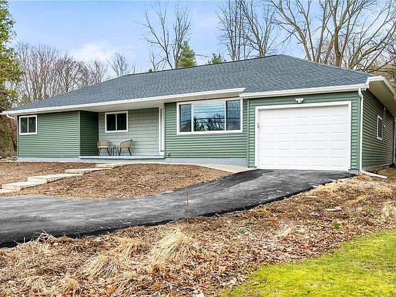 Why wait to build when everything has already been meticulously updated in this stunning 4 bedroom, 2 bath ranch. All the upgrades have been done! With 1,748 sqr ft of modern living space, this home has been remodeled from top to bottom. Highlights include a brand-new roof, vinyl siding, & thermo-pane windows. Inside, you'll find fresh paint throughout, new flooring, doors, trim, & light fixtures. The new kitchen boasts quartz countertops & Whirlpool stainless steel appliances. Both bathrooms are fully renovated. Enjoy the spacious formal dining room & oversized living room featuring an electric fireplace & built-in bookshelves. Equipped with all-new plumbing, a new hot water heater, & a 1yr old furnace with brand new central air system. The fully insulated walkout basement is ready to be finished to your liking. The property also includes a new driveway with plenty of parking & sits on a beautiful 1.99 acre lot, just minutes from town amenities & 390 expressway. Nothing has been overlooked in this incredible home! Delayed Negotiations until Tuesday 4/1 at noon.