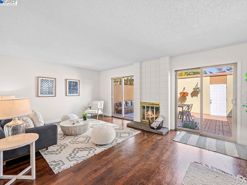 Located in Casitas HOA in Alameda's desirable Bay Farm Island, this contemporary townhome is the perfect combination of premium location, space & comfort. This 2-story, D-Model offers 3 bedrooms, 2.5 bathrooms, an open living room with dining area, a kitchen with breakfast bar seating overlooking a flexible space for an eat-in kitchen or possible family room, a laundry room, a private patio & a 2-car garage with storage space, and accessible attic storage. The open living room features two sliding glass doors leading out onto the spacious red brick patio allowing for an indoor-outdoor flow, and an abundance of natural light. A fireplace in the middle of the home provides ambiance. The home has lovely refinished wood floors, & newly carpeted wrap-around staircase. Upstairs, you’ll find three spacious bedrooms & two full baths. The primary bedroom is separated from the other two bedrooms, making it a private retreat with an ensuite bathroom and walk-in closet. Two more bedrooms at the front of the home, lead out onto the home's private balcony, perfect for a cup of coffee or viewing the sky at twilight. The balcony overlooks the homes' incredibly luscious, landscaped, common area pathways. Casitas HOA has resort-like amenities including 2 solar-heated pools, playground & clubhouse.