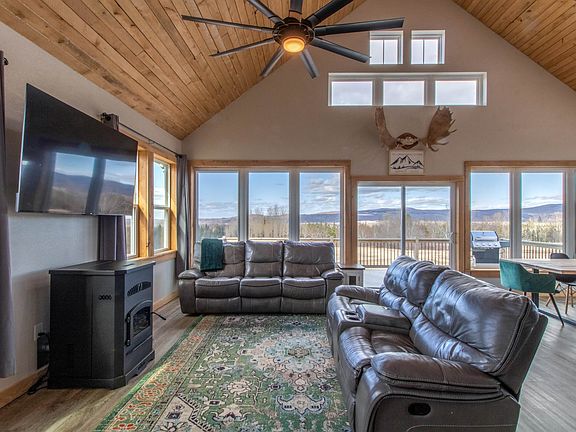 Perched on 2.2 acres with stunning panoramic views, this beautifully crafted home blends style, functionality, and natural beauty. The open-concept living area features cathedral ceilings, a pellet stove, ample natural light, and butcher block countertops. The main floor includes two bedrooms, two bathrooms, and a spiral staircase leading to a charming sleeping loft. Step outside to the spacious deck with breathtaking views—perfect for relaxing or entertaining. The unfinished walkout basement is pre-plumbed for a third bathroom, offering room to expand. The primary suite offers a private retreat, all beneath a striking copper-colored standing seam roof. This property is offered furnished and also includes an RV sewer and power hookup. Just minutes from Willoughby and Crystal Lakes, and an easy drive to Jay Peak and Burke Mountain, this property offers year-round appeal. Whether you’re seeking a primary residence, vacation getaway, or income-producing rental, this Vermont gem truly checks every box.