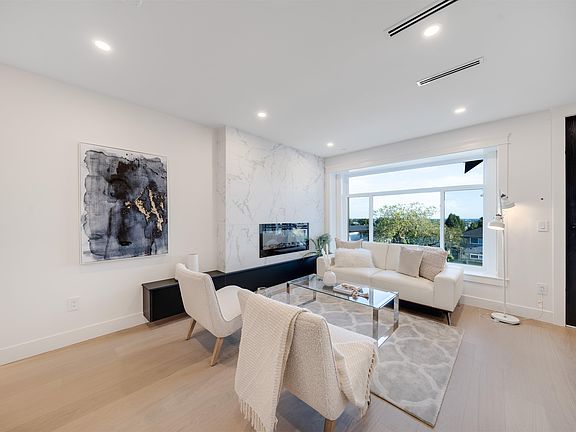 Four Story 1/2 Duplex nestled on a quiet tree-lined street steps from the amenities of South Vancouver minutes away from airport and Richmond. This side-by-side design gives you 2000sf of interior space which seamlessly transitions into an incredible outdoor entertainment space with firepit and bbq area for the indoor/outdoor living. Large and open main floor plan featuring a chef's kitchen with Fisher & Paykel Appliances. Upstairs 3 bedrooms and 2 baths including principal bedroom with ensuite. The 4th floor also has an extra living/entertainment space, Two Bedroom Legal Suite In Basement. Other property features: Engineered flooring and Double glaze windows.