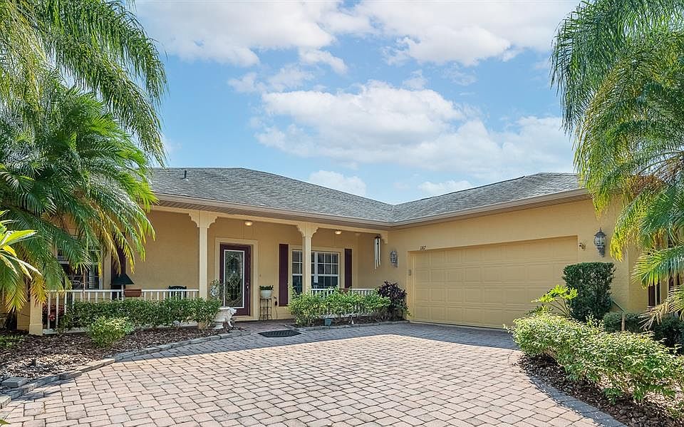 This gorgeous home is located in the award winning 55+ community of Solovita. It boasts an open concept floor plan with a living room, dining room, Florida room, spacious kitchen, breakfast nook, 2 bedrooms, 2.5 bathrooms, a bonus room (that is big enough to be a den, office of third bedroom), large screened back porch, laundry room and a rear view of lush greenery. The split plan layout allows the entire master suite to be on one side of the home with walk-in closets, views of nature, an en-suite that has a garden bathtub, stand alone shower and dual sinks. All this in one of the top 6 communities in America. Solovita offers residents access to state of the art amenities and work out facilities, dance and aerobics studios, a business center, 14 heated swimming pools, 2 heated spas, tennis courts, pickleball courts, shuffleboard, bocce ball, billiards room, art gallery, 3 restaurants and 2 championship 18-hole golf courses, driving range and putting course. Don't miss out on the opportunity to have a first class lifestyle.