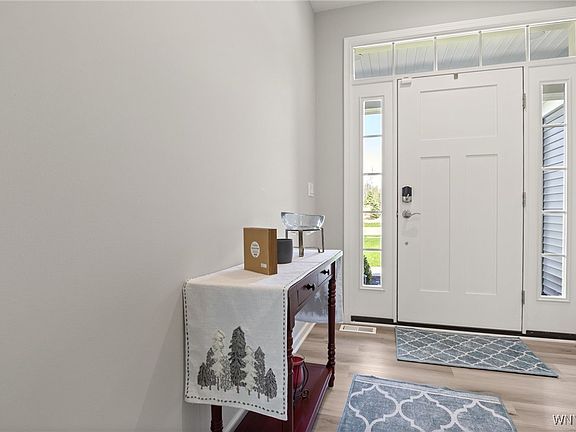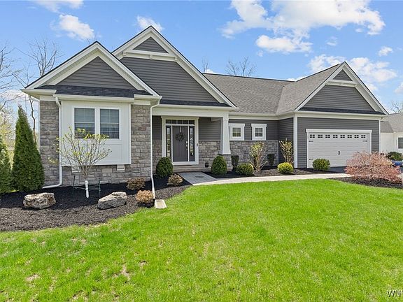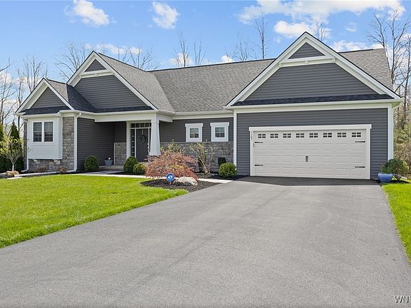 Welcome to your dream home! This stunning 3-bedroom, 2-bath ranch is tucked away on a quiet cul-de-sac in the desirable town of Greece. Built in 2021, this 1,732 sq ft beauty is packed with high-end upgrades and custom finishes—offering luxurious living without sacrificing that warm, homey feel. From the moment you arrive, the curb appeal is undeniable. A beautifully stamped walkway leads to a charming covered porch, ideal for sipping coffee on sunny summer mornings. Step inside to find rich upgraded vinyl flooring and an inviting open-concept layout that flows seamlessly from the kitchen to the dining and living areas.The heart of the home? A chef’s kitchen featuring a spacious island, sleek countertops, and custom cabinetry—perfect for entertaining or everyday meals. The living room boasts soaring cathedral ceilings, plush carpeting, and a cozy gas fireplace that sets the scene for relaxing nights in or lively gatherings.The massive primary suite is your personal retreat, complete with a spa-like en-suite bathroom featuring upgraded countertops and cabinetry. Two additional generously sized bedrooms, another full bath, and a convenient first-floor laundry room offer effortless single-level living. Head downstairs to the full-height 9-foot basement—perfect for all your storage needs or ready to be transformed into additional living space. Outside, enjoy the stamped concrete patio for summer barbecues, and rest easy knowing you have a full-house generator and a spacious 2-car garage. This home checks all the boxes—and then some.
