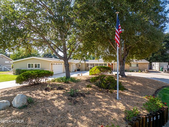 Welcome to 1167 Highland Road in highly sought after Skyline Park. Situated on just under an acre one is welcomed to the sprawling residence by the large, sweeping, circular driveway surrounding three large, mature trees . 1167 Highland Road offers a Santa Ynez Valley ranch style home that incorporates 1958 mid century modern vibes for a simple but sophisticated living environment. San Rafael mountain views can be found from the living room and front yard. This single story, four bedroom, two bath home offers plenty of space for family and friends. Further, the property features an attached, one bedroom, one bath guest suite. The kitchen is well positioned between a den and dining area with wide open backyard views. The backyard is an entertainer's dream, featuring a covered porch, pebble bottom pool and fantastic outdoor kitchen with fireplace. Bring your 4H projects or vegetable garden as the backyard extends beyond the pool area to a sizable lawn, garden/pet area, small barn/utility shed and chicken coop. There is space on the northeast side of the home for RV or boat parking. This property features solar panels and benefits from the Skyline Park water district. 1167 Highland Road is a terrific opportunity to create a peaceful family retreat in the heart of the Santa Ynez Valley.