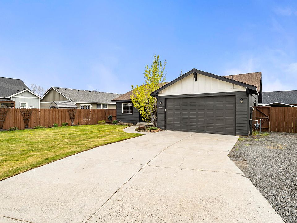 Situated on a quiet street in NW Redmond, this well-maintained single-level home has been extensively renovated. Upgrades include new paint on both the interior and exterior, new flooring, new molding, and a new AC unit. A cozy living room with gas fireplace flows into a dining and kitchen space with new granite countertops and subway tile backsplash, new undermount sink, and new high-end hardware. The primary suite features vaulted ceilings and a walk-in closet. A laundry room with basin sink is conveniently located off the garage. Enjoy a spacious fenced back yard with a brick patio and plenty of room for dining or entertaining. The home also offers abundant storage inside and out, including a sizable shed, carport and R/V parking. Located in a growing neighborhood just down the block from Quince Park, which features play structures, picnic tables, and walking trails.