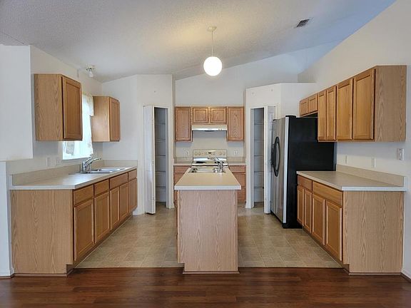 MOVE-IN DATE : APRIL 1-15, 2025 Well maintained and clean, this 3 bedroom 2 bathroom split floorplan home features a warm and inviting interior with a formal living room, kitchen, and great room. The kitchen is outfitted wood cabinets, two double sinks, a large center island, two closet pantries. The main bedroom has vaulted ceilings, carpet, two walk-in closets, a large bath with shower, soaking tub. The spacious living and family rooms have vaulted ceilings and laminate wood flooring. Two nice sized bedrooms share the hall bath. Large linen closet and laundry closet just outside the hall bath. Sliding doors from the dining area lead to a large concrete patio and ideal spot for outdoor living.